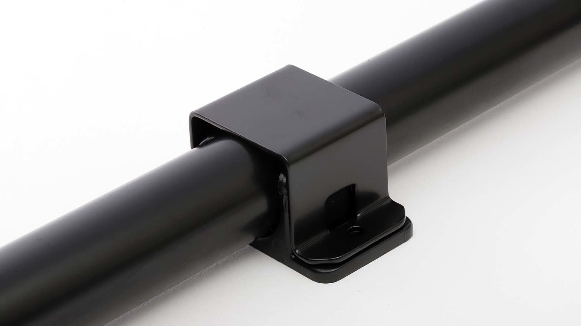 「ヤザキ イレクターパイプ」パーツの「J-46」を使用して固定したパイプが外れないようにする、押さえのためのステーです。浮き上がりを防止します。